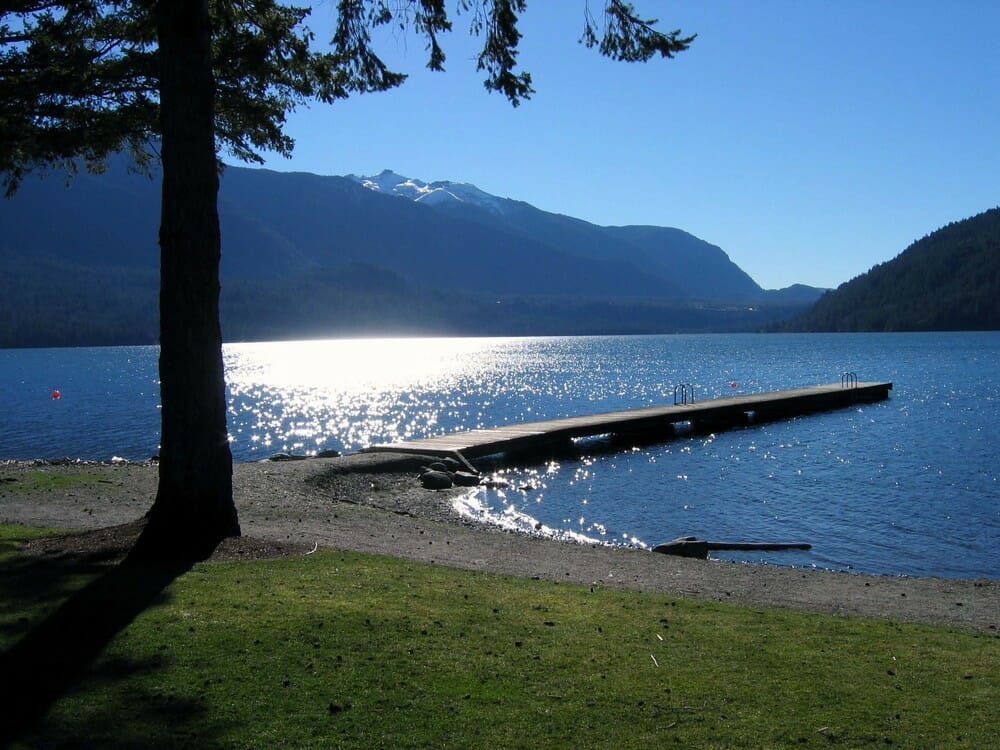 Не так далеко от Blackcomb village есть красивые песчаные пляжи, травянистые бугорки и плавучий деревянный причал.