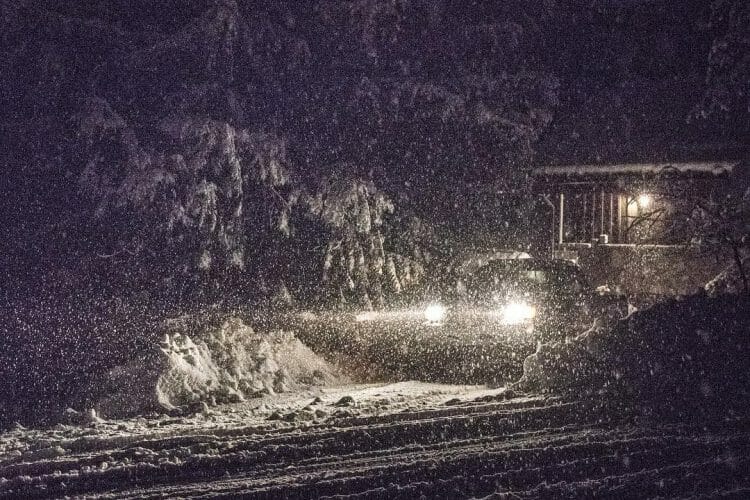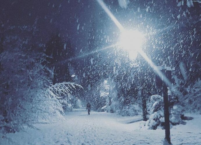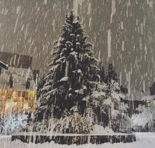 Ночью снегопад обрушился на туристическую деревушку и выглядело это, как сцена из сказки.