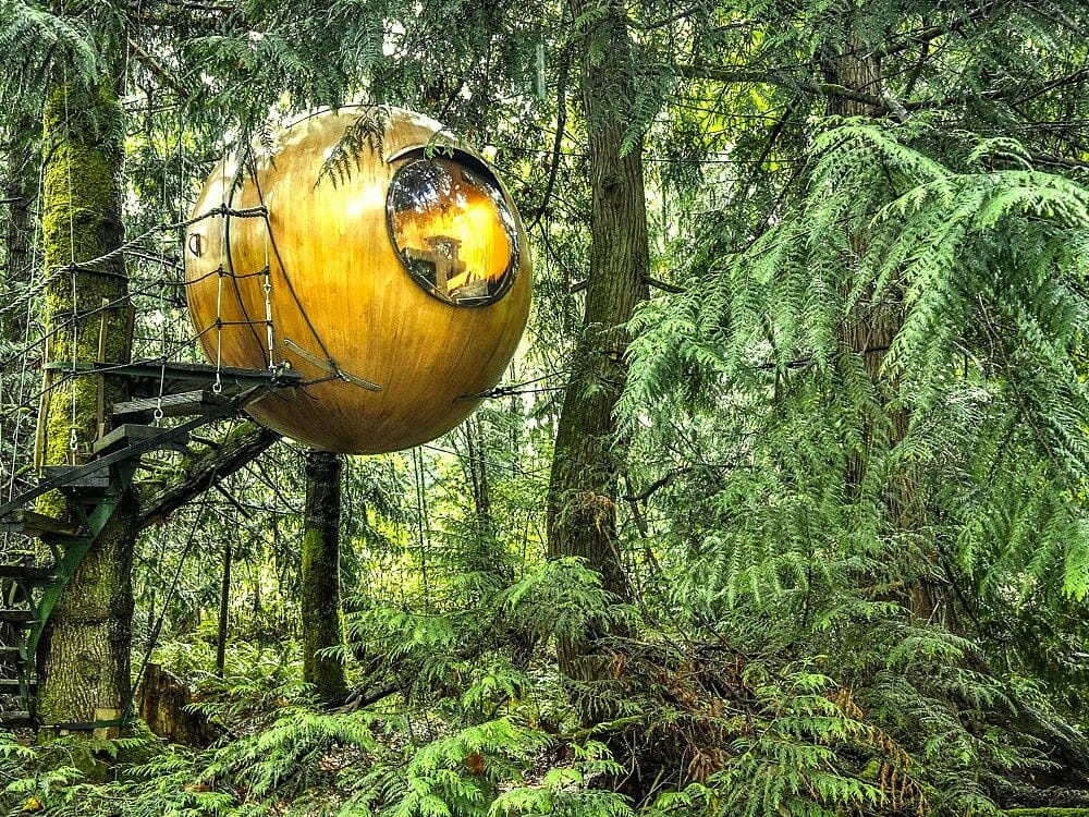 Дома-сферы расположены среди высоких деревьев в лесу, недалеко от Ванкувера. Эти три рукотворные сферы подвешены среди деревьев на крепких канатах. Каждая из них — это уникальный гостиничный номер, который готов распахнуть свои двери гостям в любое время года. Но есть одно «условие» — эти домики на деревьях исключительно для взрослых. Внутри есть электричество и прочие удобства. Сферы предлагают своим гостям возможность духовного воссоединения с природой, ведь они нежно покачиваются на ветру. Мы уверены, что после ночи проведенной здесь, вы будете воодушевлены.