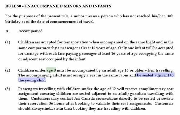 Тем не менее, группа по защите прав пассажиров Air Passenger Rights рассмотрела внутренние правила Air Canada и указала на руководящие принципы по перевозке пассажиров в возрасте до 18 лет.
