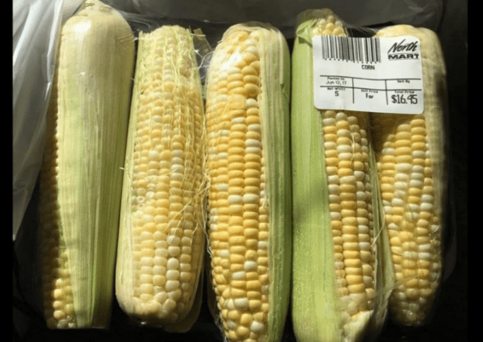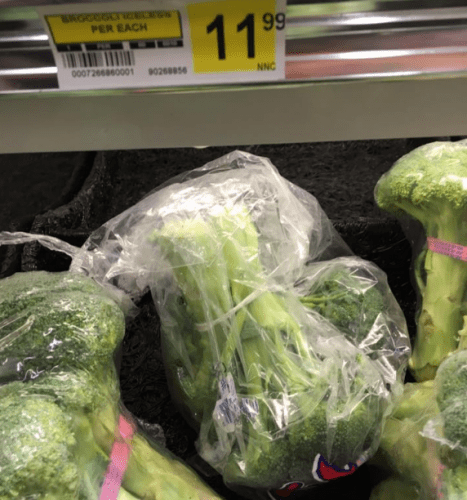 Это означает, что даже несколько продуктовых пакетов могут стоить целое состояние. Например, три пакета продуктов на фото ниже обошлись в USD$245 в Корал-Харбор, Нунавут.
