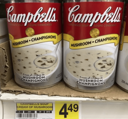Например, один продуктовый магазин в регионе взимает USD$13,59 долларов за кетчуп (цены указаны на полках в канадских долларах.)