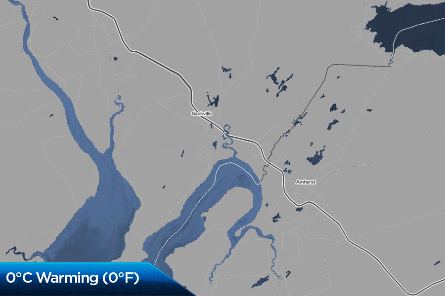 Однако к концу века шоссе, болото (и большая часть города Саквилл) может уйти под воду.