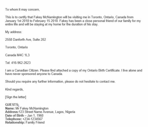 ШАГ 4: ОБРАЗЕЦ ПРИГЛАШЕНИЯ НА ГОСТЕВУЮ ВИЗУ В КАНАДУ