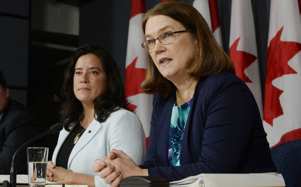 Министр здравоохранения Канады Джейн Филпотт,и министр юстиции Джоди Уилсон-Рейболд на пресс-конференции в Оттаве в четверг, 14 апреля 2016 года. Федеральное правительство приняло спорный закон, разрешающий врачам осуществлять эвтаназию по желанию смертельно больных людей.