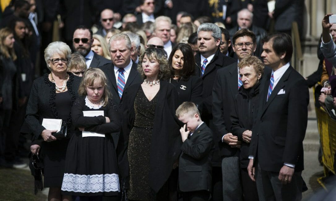 Бывший градоначальник Торонто Роб Форд, гремящий во многих скандалах из-за своих «дурных привычек», умер 22 марта 2016 года от рака толстой кишки. Несмотря на свое экстравагантное поведение, Форд был очень популярен среди горожан. На фото семья мэра сдерживает слезы во время похорон. Дочь Роба, Стефани (на фото слева) во время церемонии прощания описала своего отца, как «the mayor of heaven now».