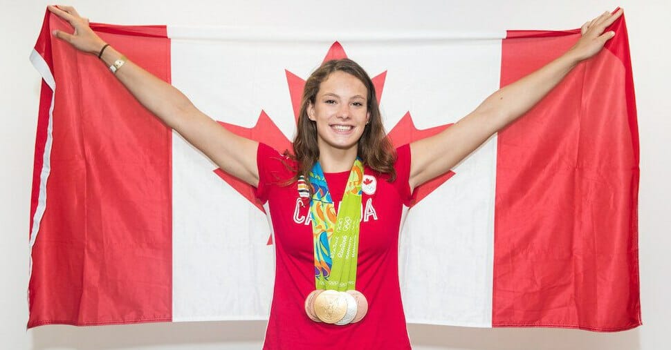 Пенни Олексяк из Торонто держит свои медали — золотую, серебряную и две бронзовые, которые она выиграла на летних Олимпийских играх в Рио. Пенни также стала спортсменкой года в Канаде.