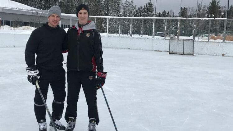 Кросби надел коньки и более часа прокатался с 19-летним юношей, который играет в юниорской хоккейной лиге (junior AA hockey).