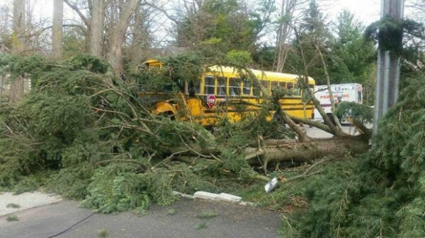 Из-за порывов ветра в Канаде рухнул недостроенный дом в районе Джорджтаун. Также дерево упало на школьный автобус, в котором находилось 27 детей.