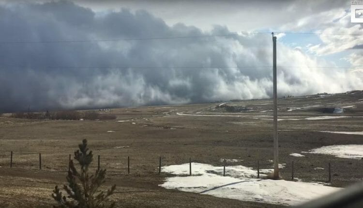 В провинции Альберта можно было увидеть редкое природное явление, во время которого подвижное облако пронеслось по горизонту как цунами.