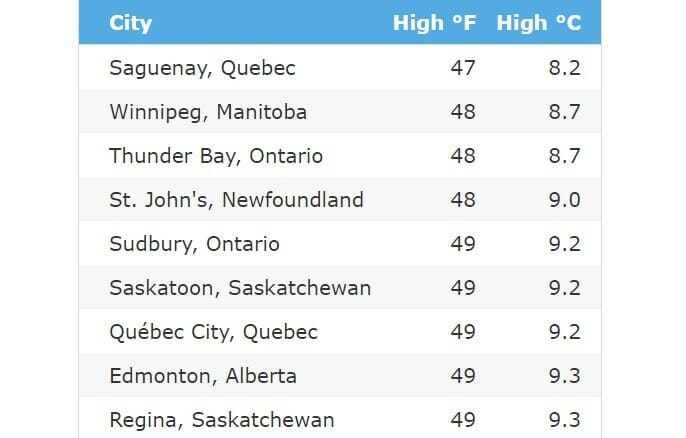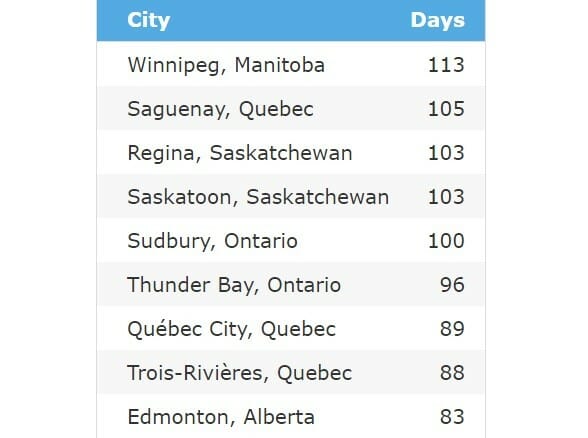 Если вы собираетесь переезжать в Канаду, но не любите холода, то избегайте эти 10 городов.