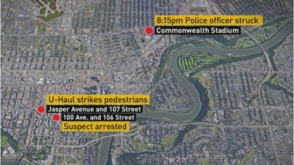 Власти Канады проводят антитеррористическое расследование в связи с двумя инцидентами с автомобилем в городе Эдмонтон, в ходе которых был ранен полицейский и совершен наезд на пешеходов. Об этом заявил шеф городской полиции Род Нект.