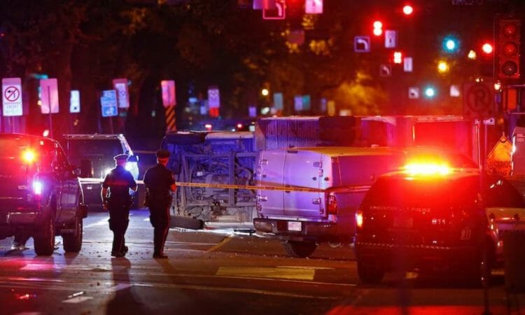 В Канаде неизвестный ранил полицейского и наехал на пешеходов.