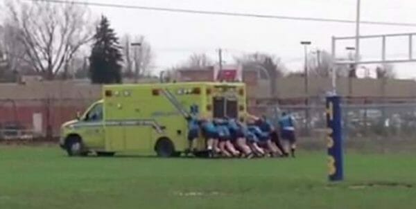 Очень трогательные момент: девочки-подростки из команды по регби вытолкали застрявшую скорую помощь, которая везла их товарища по команде в больницу.