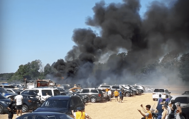 Пожар на парковке фестиваля в городке Niagara-On-Lake за несколько минут уничтожил более 30 автомобилей.