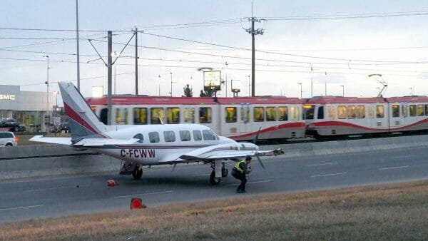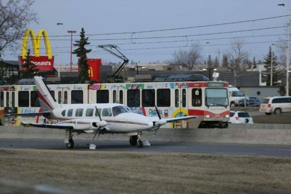 VIDEO: Plane with six passengers lands on Calgary street this morning.