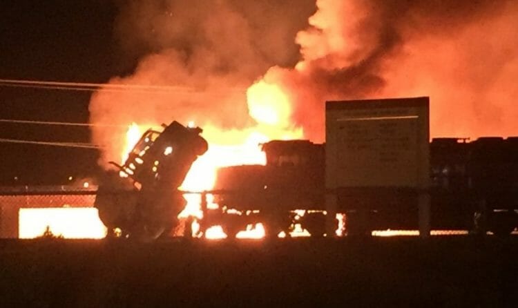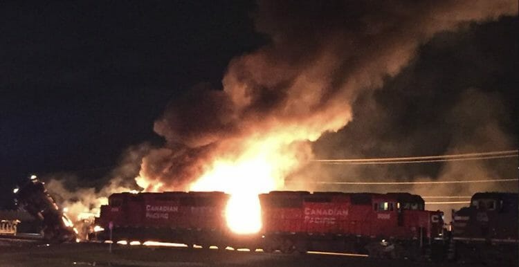 Отмечается, что происшествие произошло в депо транспортной компании CP Rail. Компания подтвердила, что никаких токсичных материалов не перевозили.