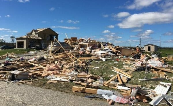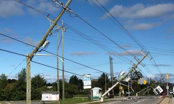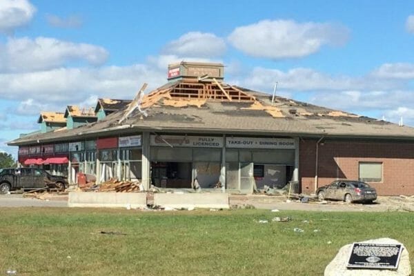 Часть Канады накрыл мощный торнадо. Сильнейший ветер вырывал с корнем деревья, валил дорожные знаки, сбивал с ног людей и разрушал дома.