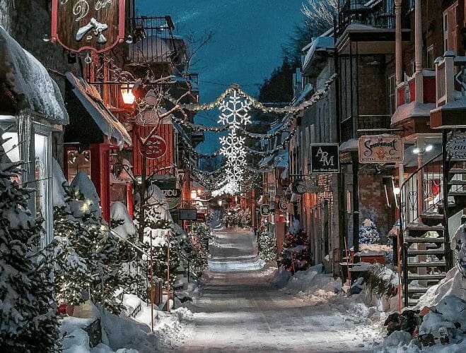 Вы можете испытать истинную магию Рождества в старом городе Квебека. До чего же он прекрасен на Рождество! Эти узенькие улочки, магазины, уютные ресторанчики и множество огней. В декабре старый Квебек завораживает!