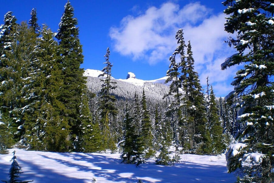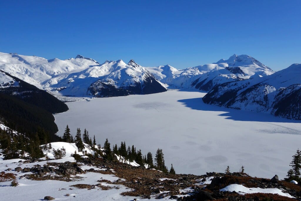 Одна из самых красивых трасс для прогулок на снегоступах в Британской Колумбии находится в Сквомиш. Озеро Гарибальди прекрасно не только летом, но и зимой. Этот хайкинг не для новичков и нужно иметь опыт за плечами, а вот путь к лугам Taylor Meadows рекомендуется!