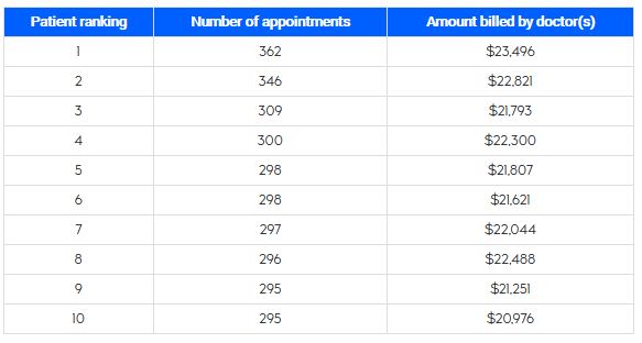 Вот сколько раз 10 самых активных пациентов Квебека в 2024 году обращались к семейному врачу: